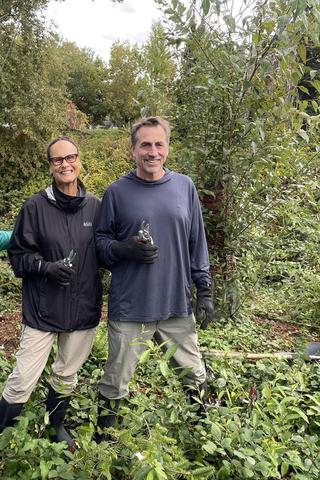 Dress for the weather, wear closed-toe shoes, and cover your legs and arms; blackberries can be very scratchy. Bring a full water bottle and, if you have them, tough gardening gloves.